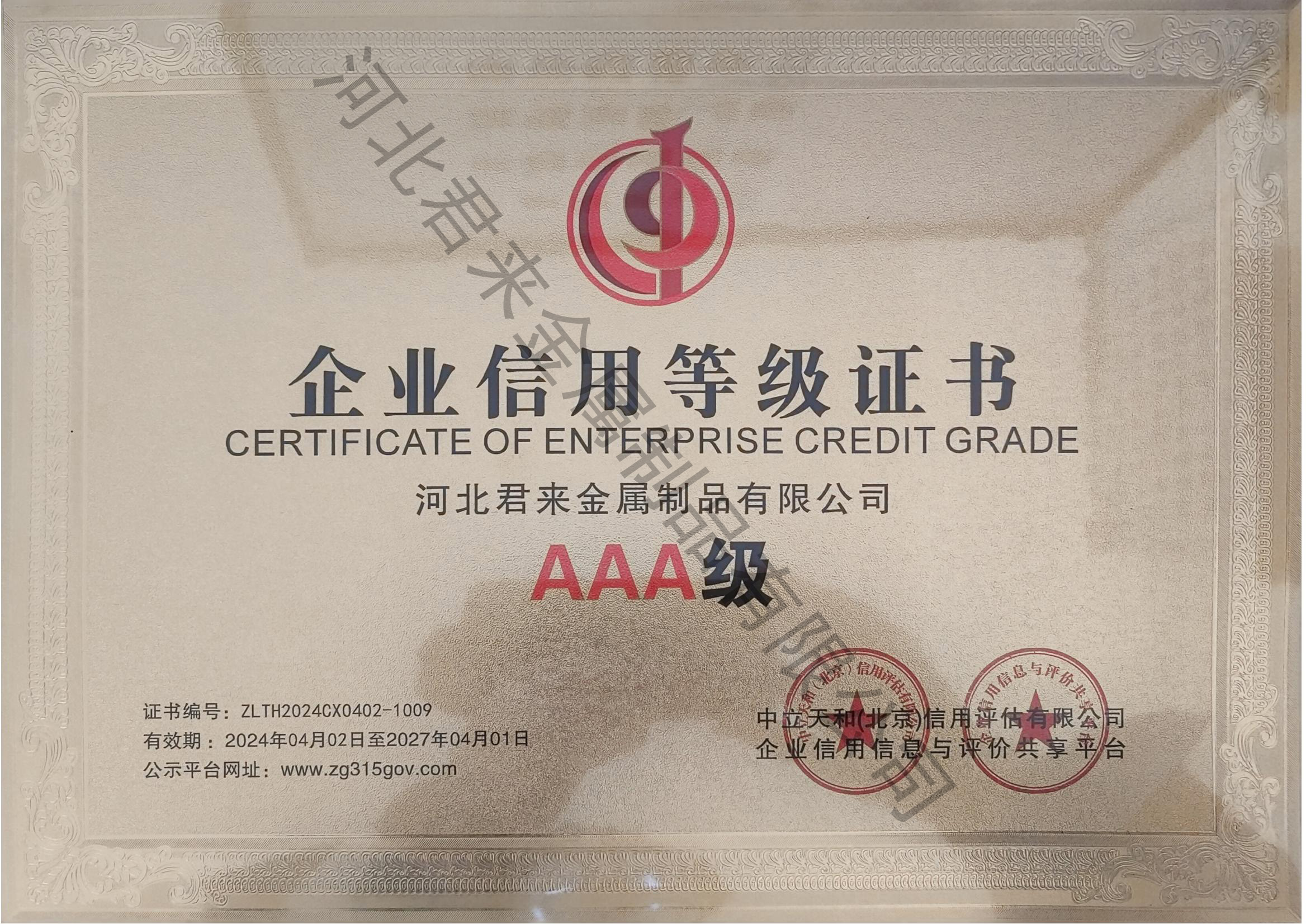 企業信用評價AAA級信用企業
